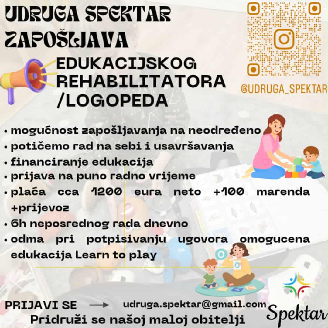 Udruga SPEKTAR - oglas za zapošljavanje edukacijskog rehabilitatora